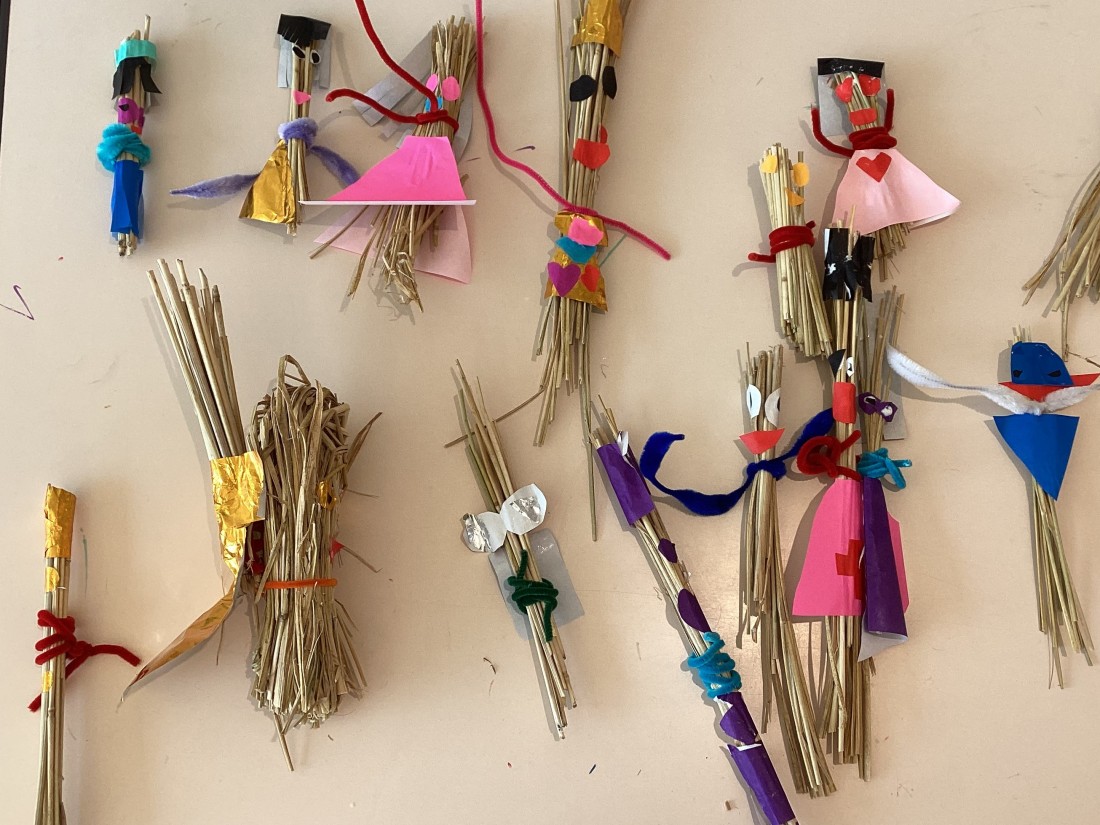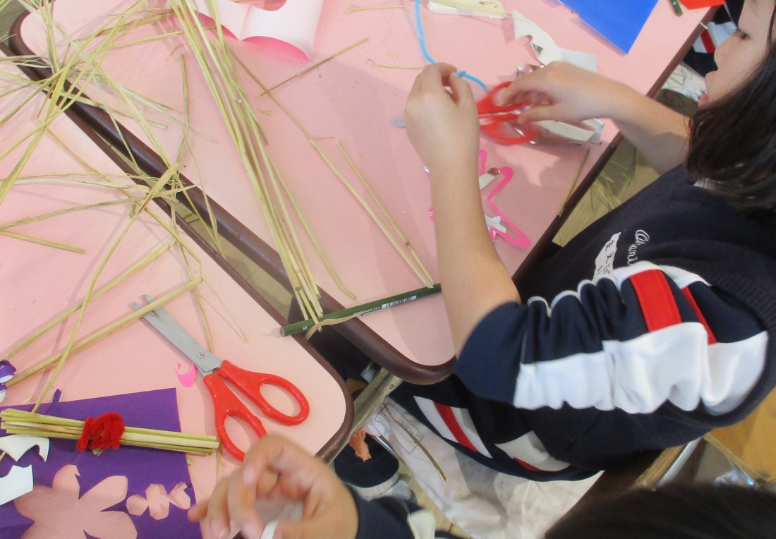 今日は、稲刈り依頼久しぶりにお米隊長が来てくださり、「わら細工」ををしえてくださいました。
