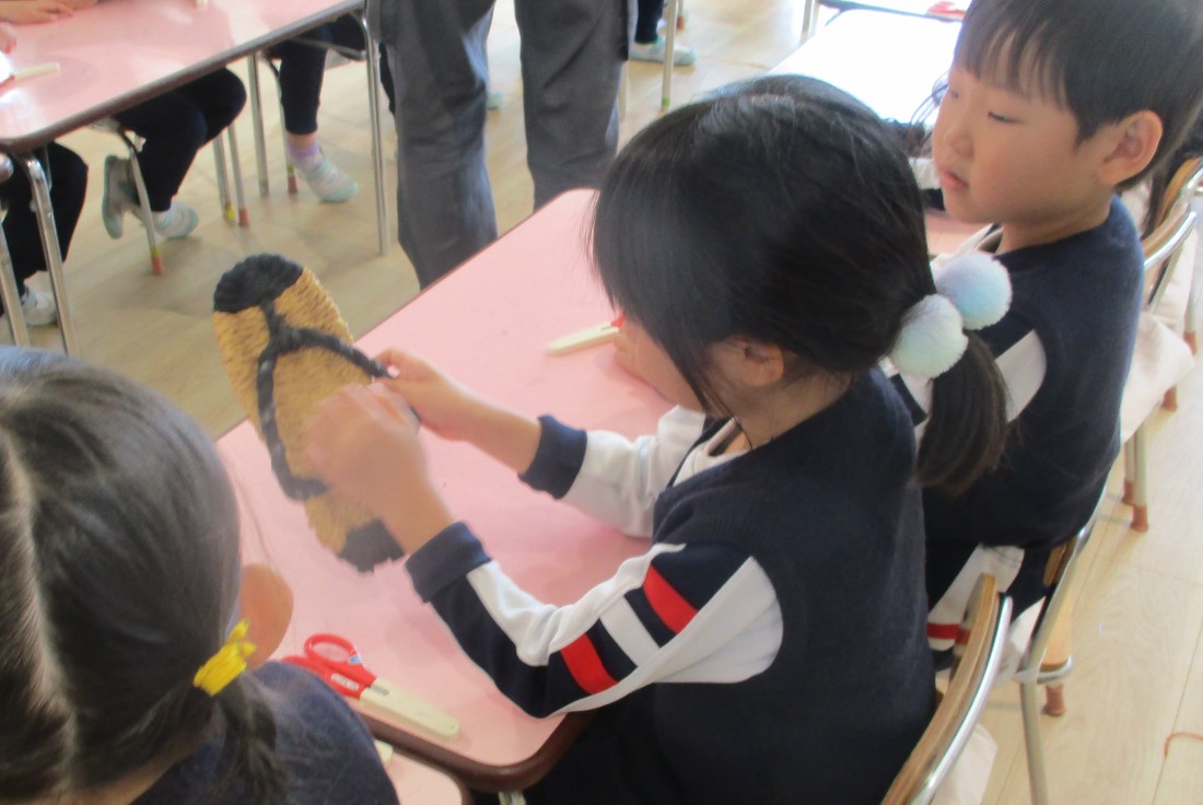目や手や飾をつけていきます。細かい作業ですが、それぞれの思いで取り組んでいました。