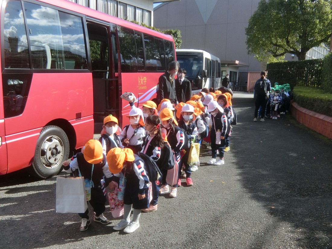 4歳児が、大学バスに乗って浜寺公園へ遠足に行きました。公園に到着!先生からの約束事をし ...