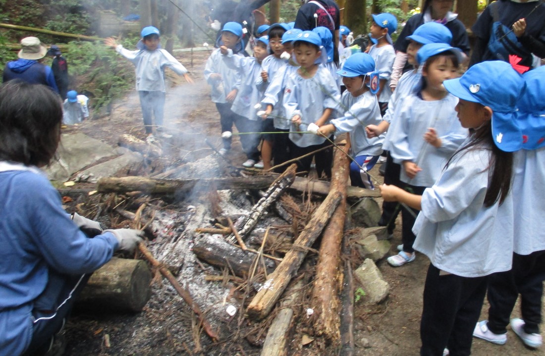 月曜日・火曜日、5歳児さんはお泊まり保育!大学バスで千早赤阪村にある里山「結の里」に向かいます!