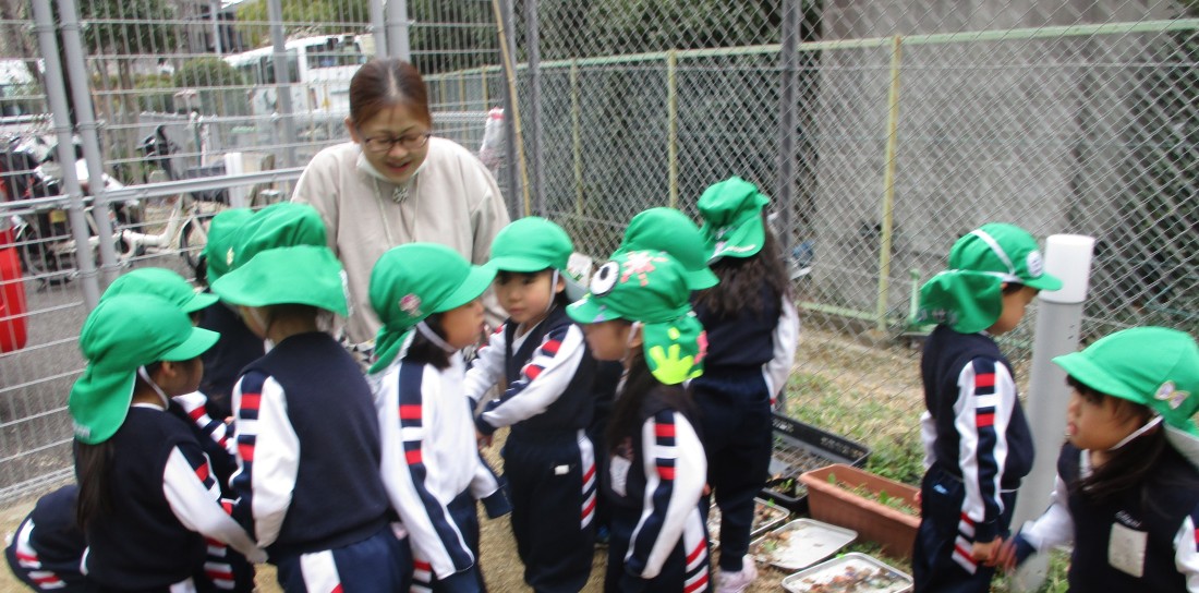 この冬一番の冷え込みの今日。「寒いね、寒いね・・」と言いながらも子ども達は元気に園庭へ出てきました。