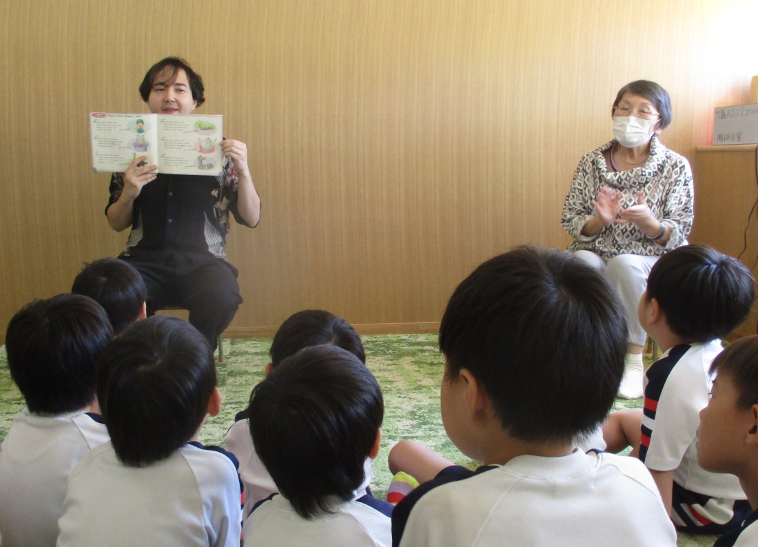 今日は園長先生の英語あそびの日。今日から新しい先生が加わってくださいました。