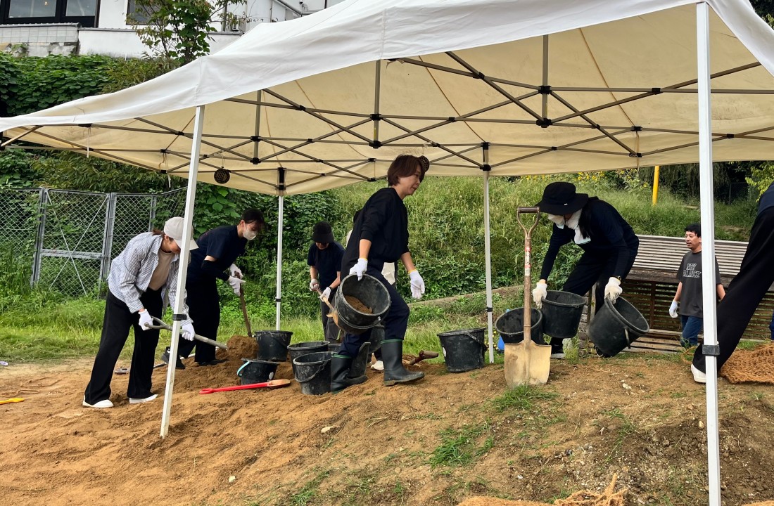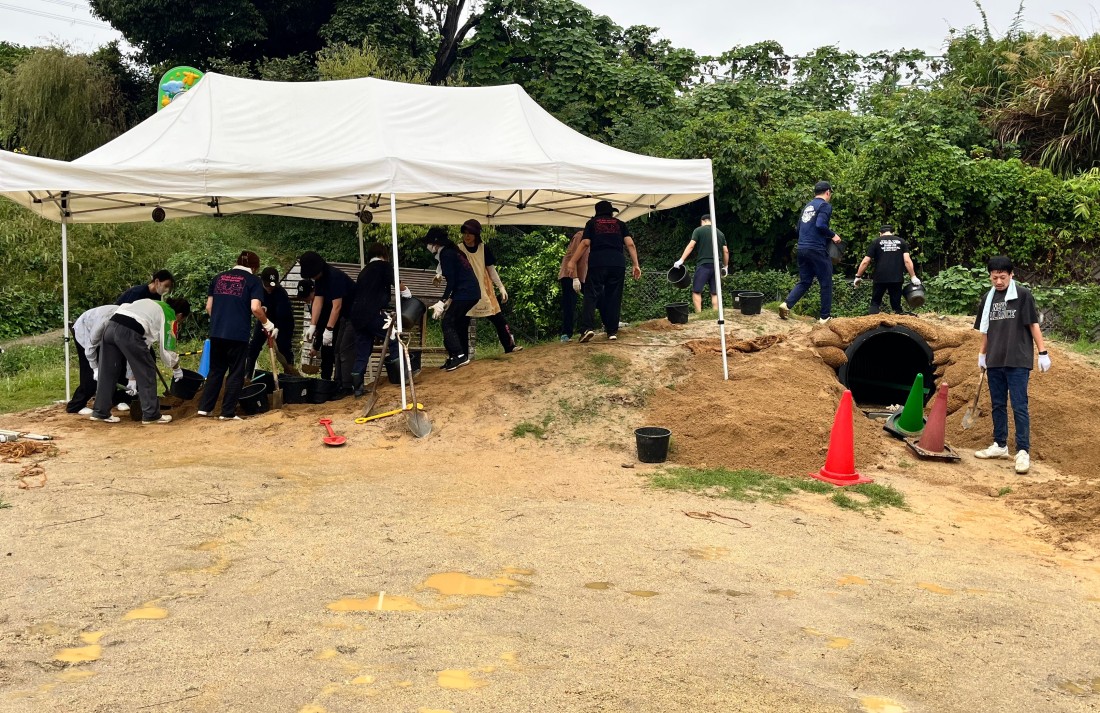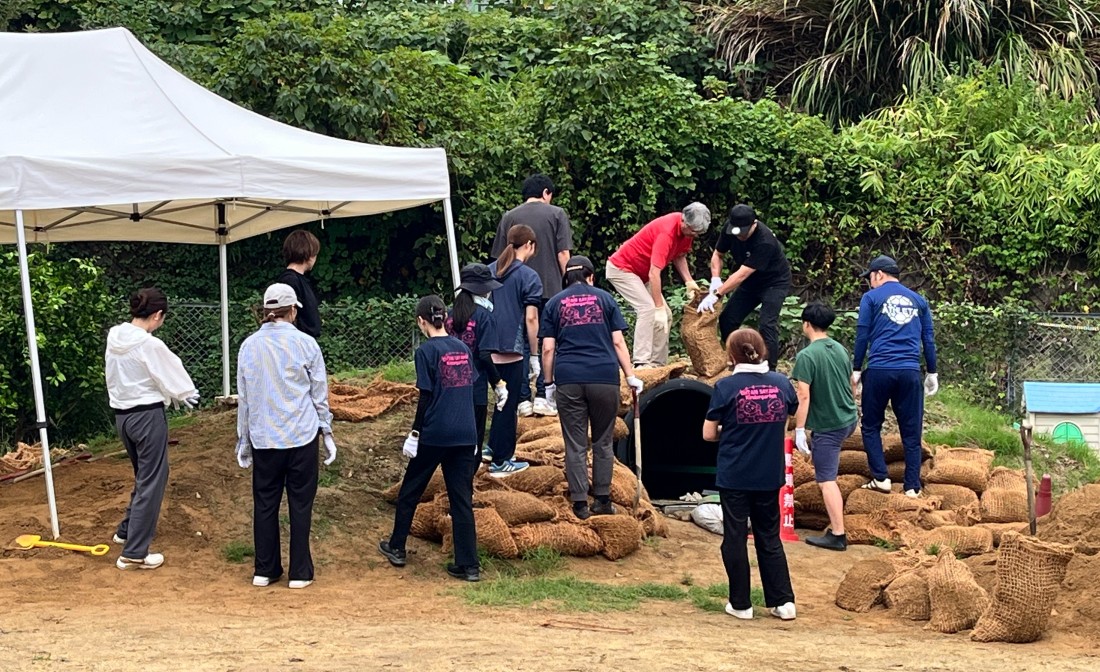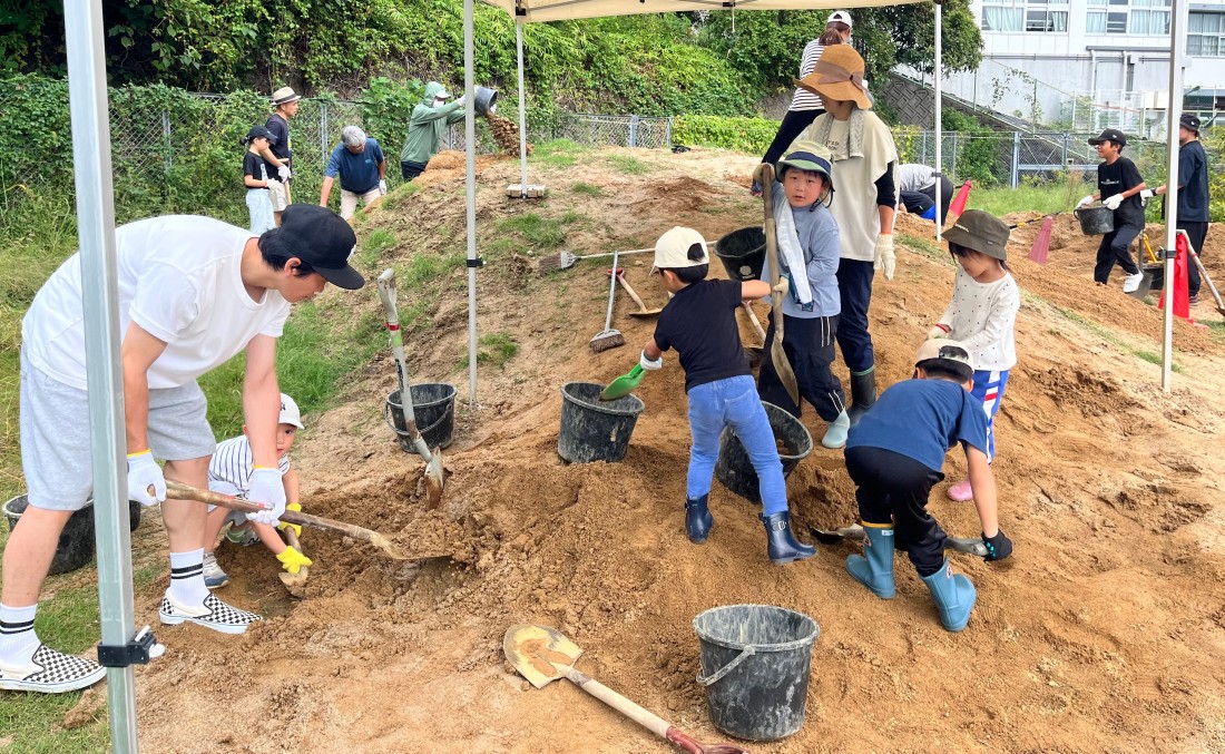 5日は昨日のベースの上に、真砂土をバケツに入れて、何度も何度も運んで踏み固める作業を中心にしてくださいました。