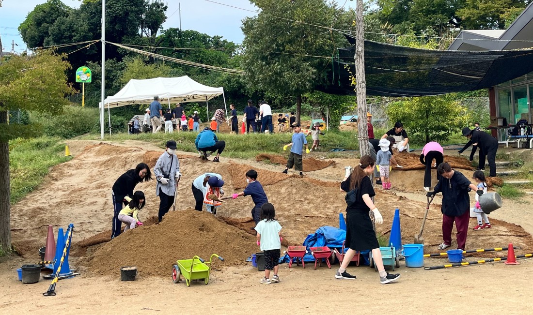 天候が定まらず、メール配信が二転三転したこと申し訳ございませんでした。重い土や土嚢をいっぱい運んでくださったお父様お母様。ぶどう組の参観の間にと参加してくださったお父様。午前も午後も参加してくださったお父様。日頃大きなシャベルを持つこともないのにこの日は土をいっぱい掘ってくださったお母様。そして大活躍の子どもたち。本当にありがとうございました。