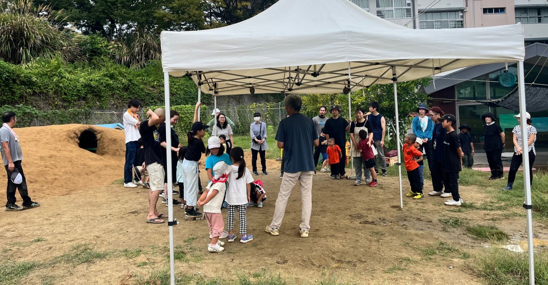 10月4日(土)5日(日)園庭改修工事にボランティアでたくさんの保護者の方が参加してくださいました。4日は小雨の降る中での作業になりました。テントを建てていても小雨にぬれながら、ヤシマットに土を詰め、重い土嚢を運ぶ作業を中心にしてくださいました。