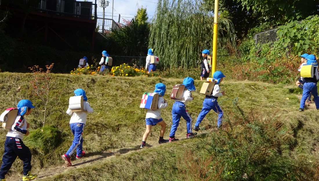 今日は朝からランドセルを背負って第4園庭に行きました。